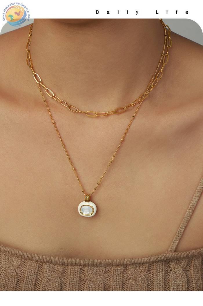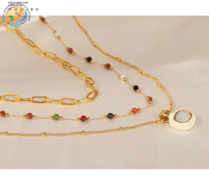 欧美新款简约个性小众设计钛钢镀金天然石吊坠项链
