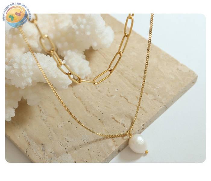 ins冷淡风淡水珍珠吊坠多层叠戴项链女钛钢锁骨颈链
