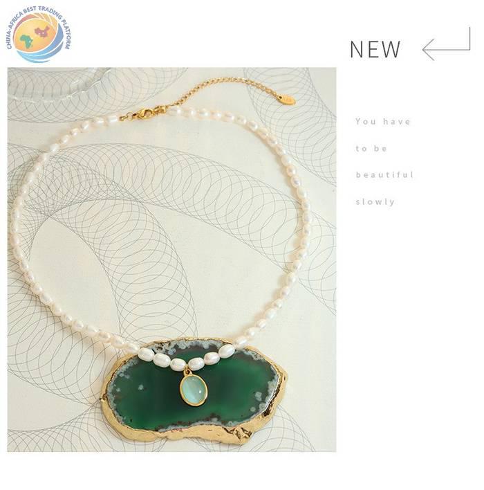 Handmade beaded opal titanium steel pendant necklace country Tide light luxury women\'s clavicle chain