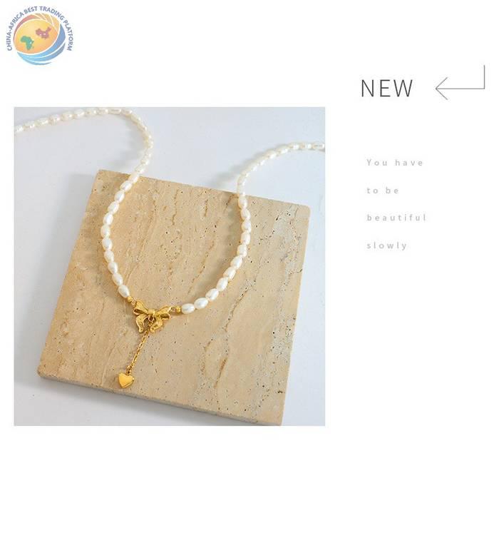 法式公主同款蝴蝶结流苏爱心吊坠淡水珍珠项链