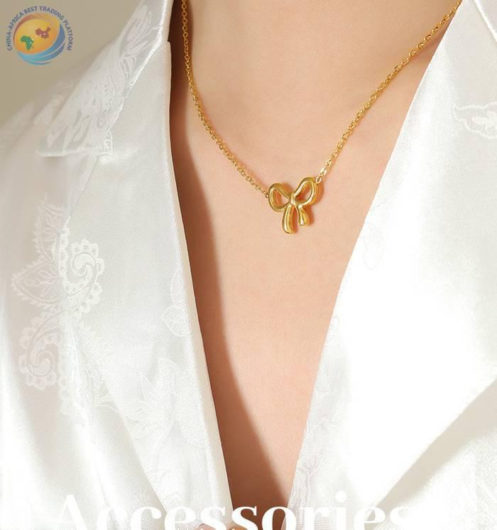 卡哇伊小众设计蝴蝶结吊坠项链锁骨链