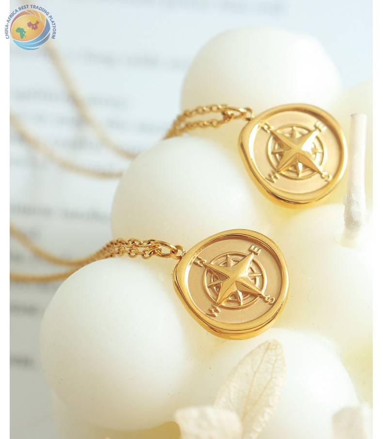 欧美ins风热销圆牌指南针设计吊坠项链