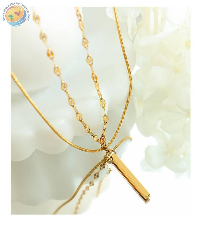 欧美小众设计轻奢长方条吊坠多层叠戴项链