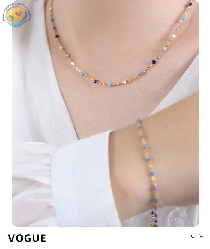 Simple cross bead bead titanium steel non-faded women\'s necklace