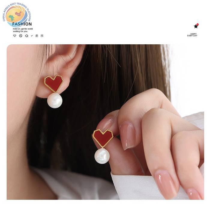 法式ins轻奢风爱心天然贝壳优雅精致钛钢镀18K饰品