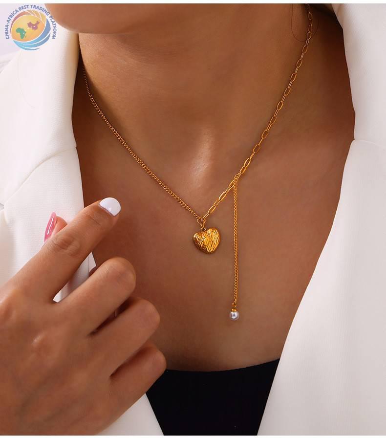欧美个性高级感饰品雕刻纹理设计感爱心吊坠流苏项链