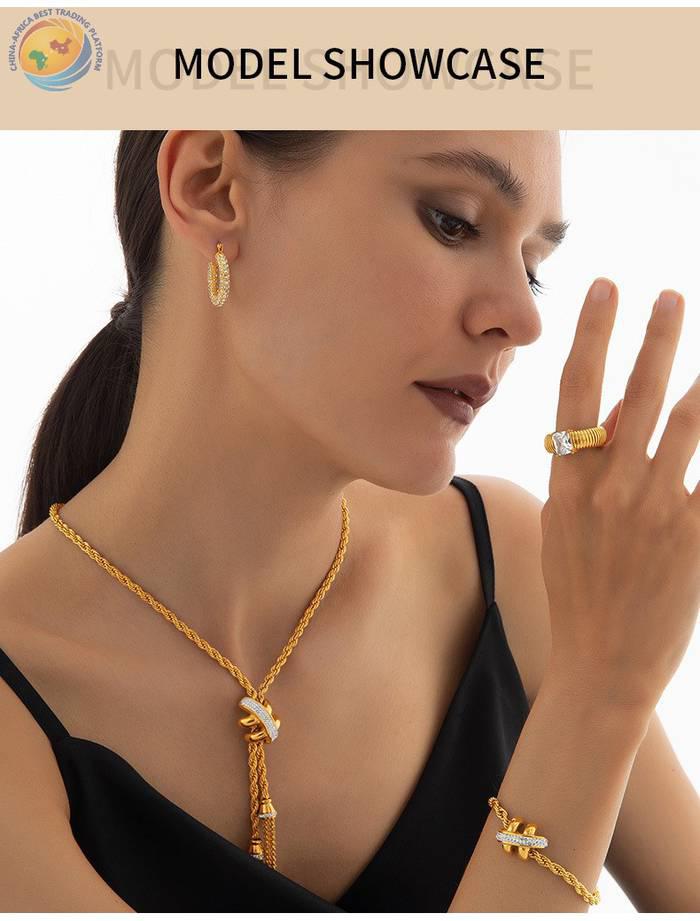 简约几何麻花链饰品镶钻设计感钛钢饰品