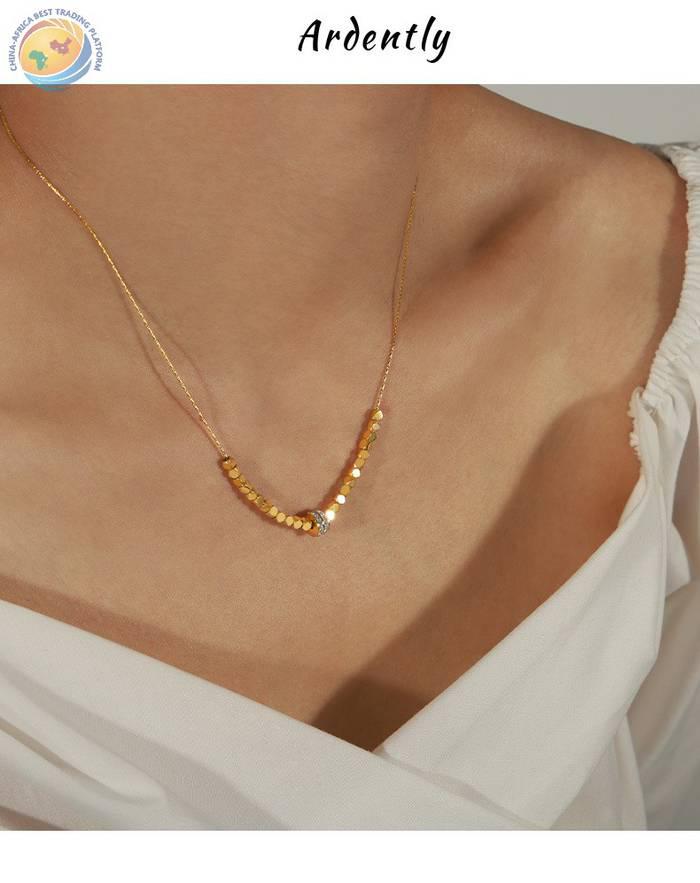 个性钛钢镀金方糖珠圆形镶钻吊坠项链饰品女