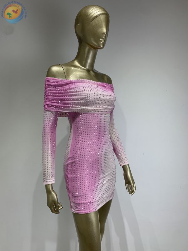 爆款渐变烫钻连衣裙高街辣妹性感紧身短包臀裙