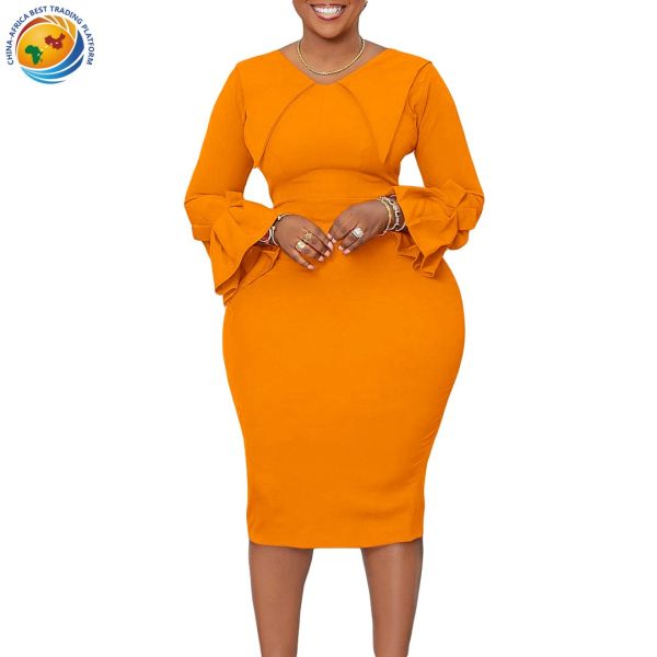 时尚气质通勒职业包臀铅笔裙非洲连衣裙