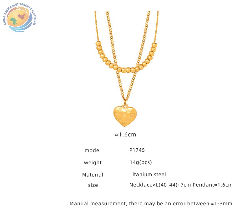 设计钛钢镀金爱心格纹钛钢珠项链饰品女