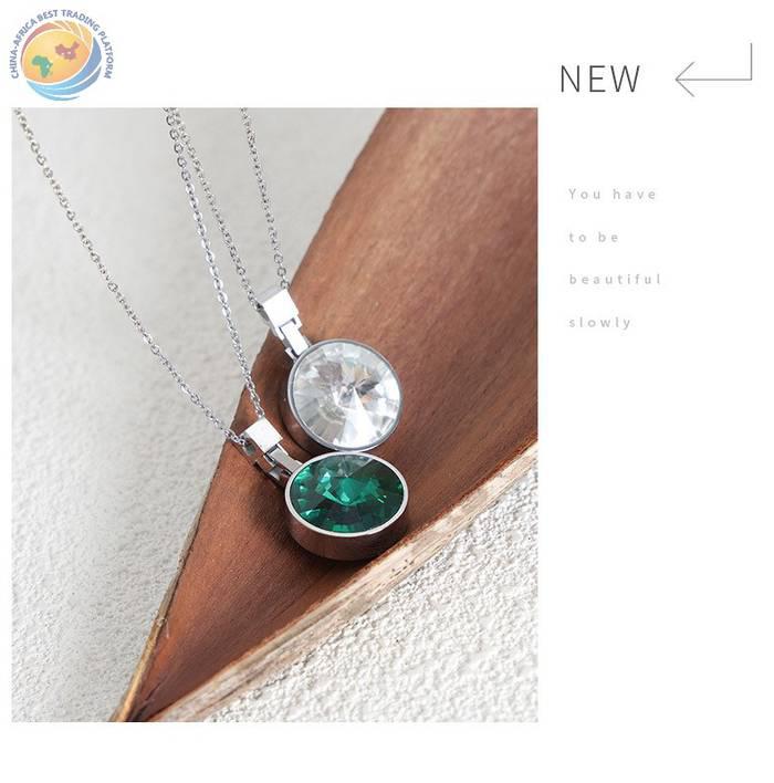 复古圆形撞色金属白色吊坠颜色可选项链钛钢饰品女