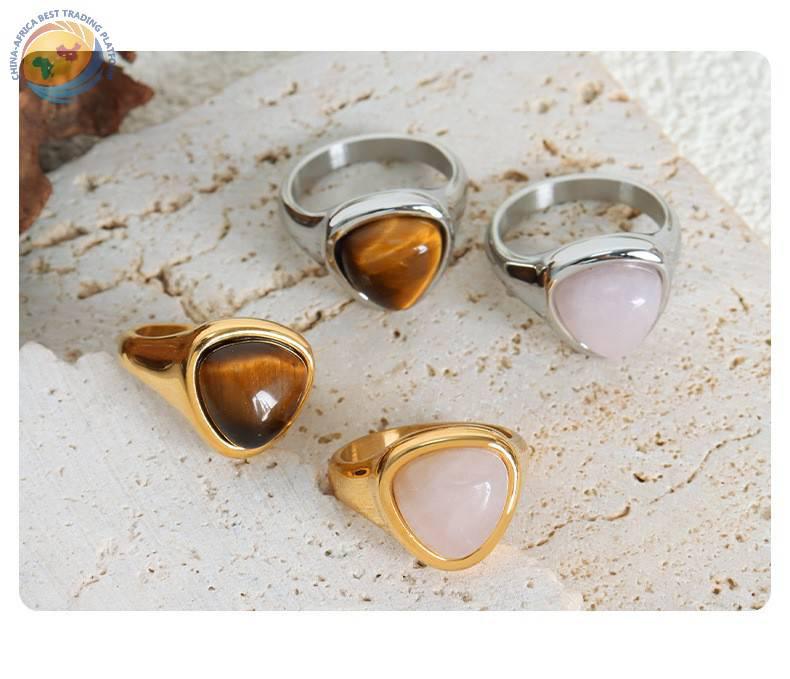 Hot natural powder stone natural tiger\'s eye stone elegant couple ring titanium steel ring