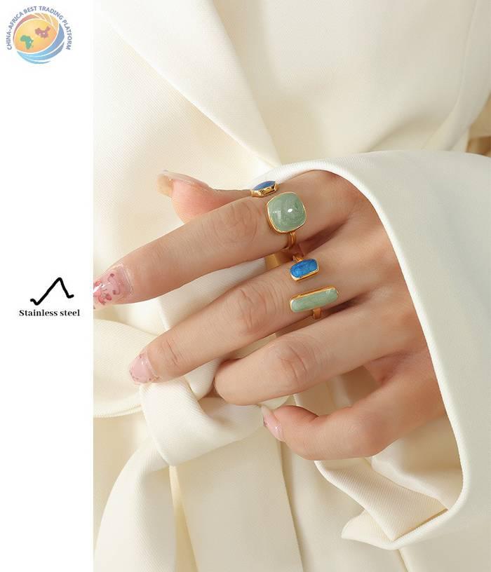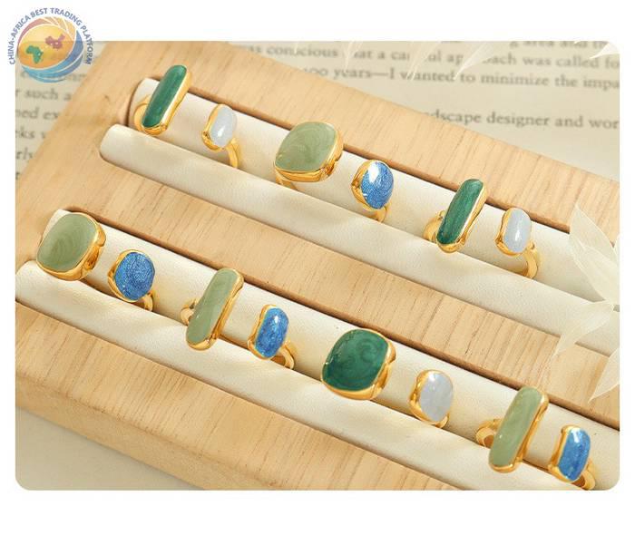 Adjustable enamel hand drip ring titanium steel gold plated ring bracelet