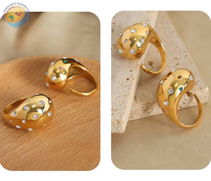 小众简约轻奢钛钢镀金镶彩钻开口戒指饰品女