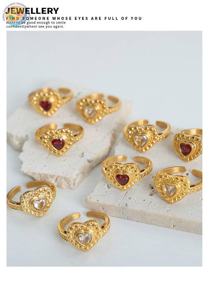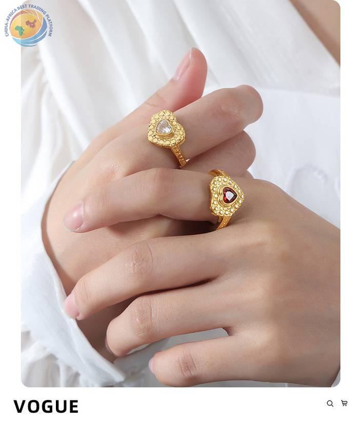 欧美高级感轻奢复古风爱心镶锆石钛钢开口戒指
