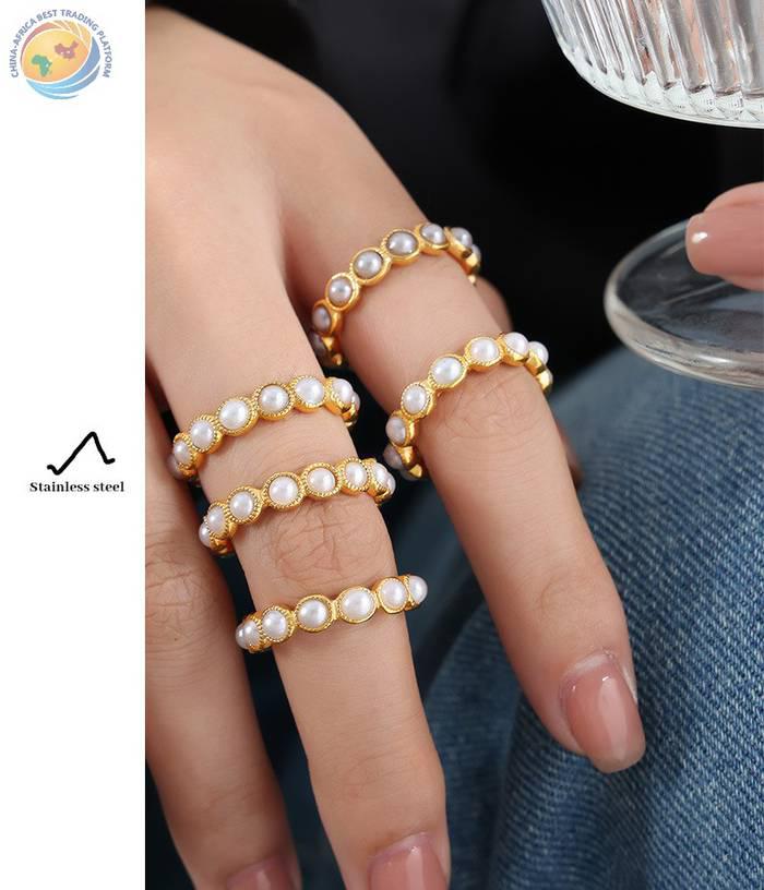 法式复古满天星巴洛克高光贝珠气质钛钢指环女款戒指