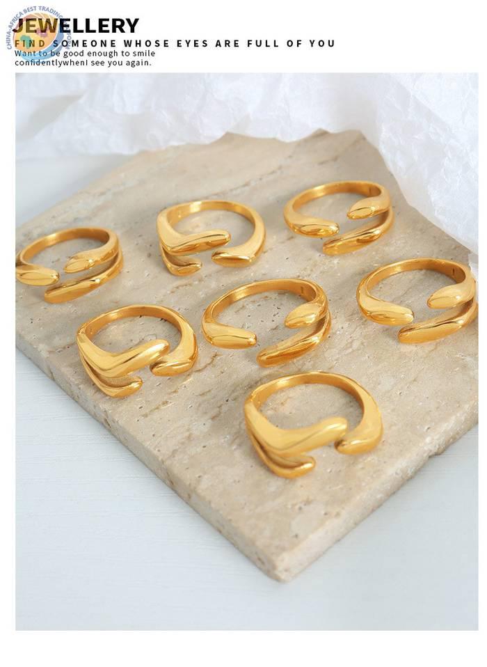 个性几何戒指开口爪扣时尚镀金钛钢指环饰品