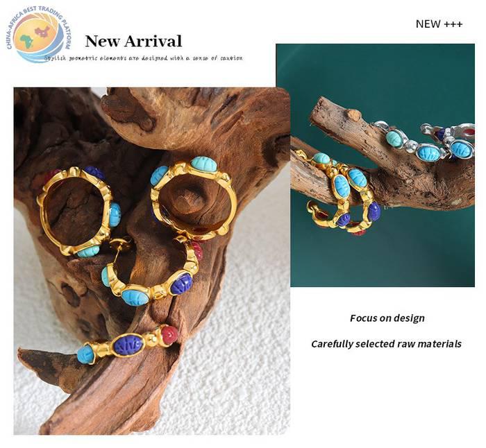 新款复古个性戒指创意设计耳环钛钢镀金首饰套装