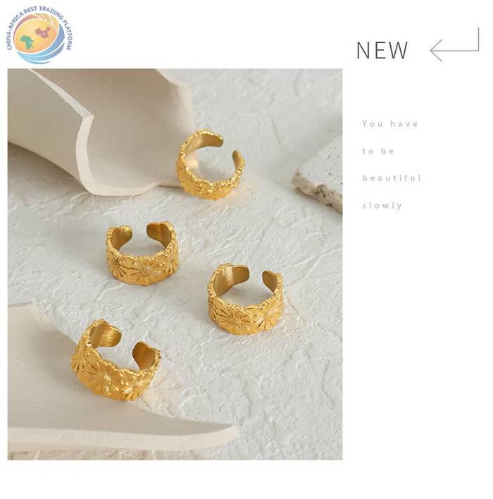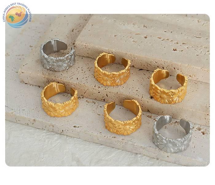新款高级感复古轻奢花朵钛钢镀18K金戒指