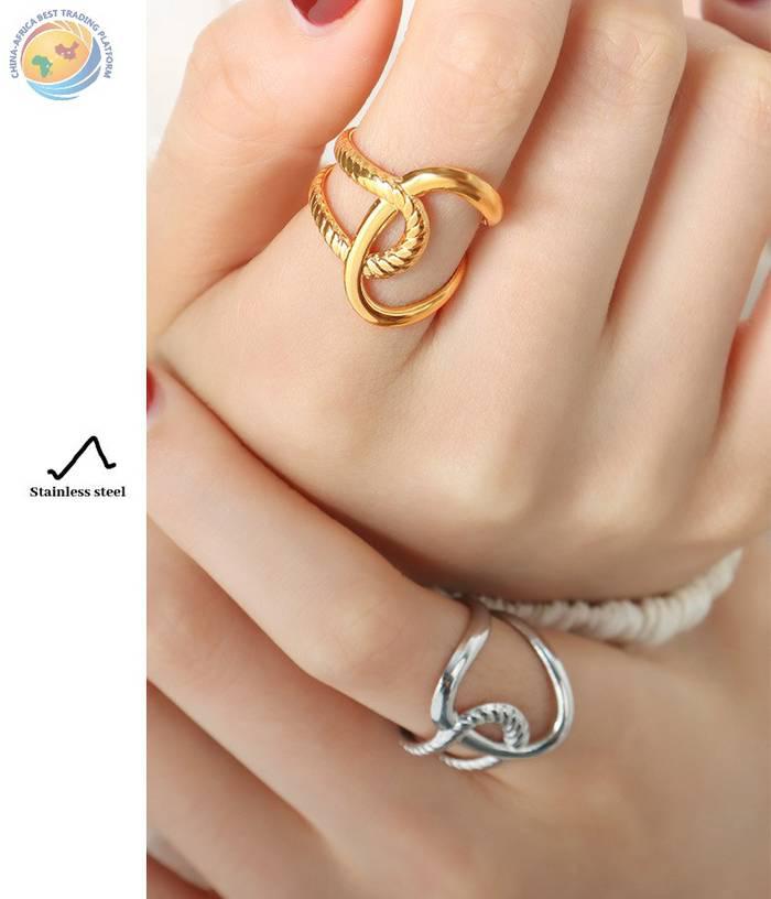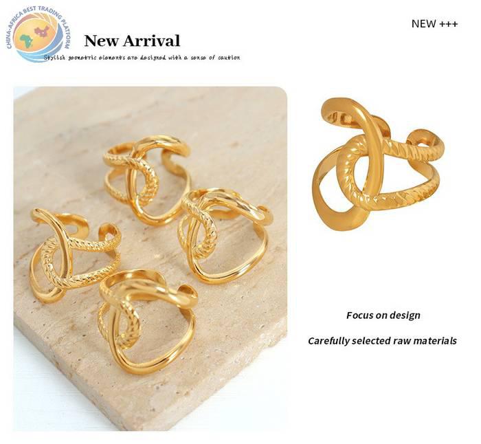 个性设计缠绕不规则钛钢电镀18K金开口戒指饰品