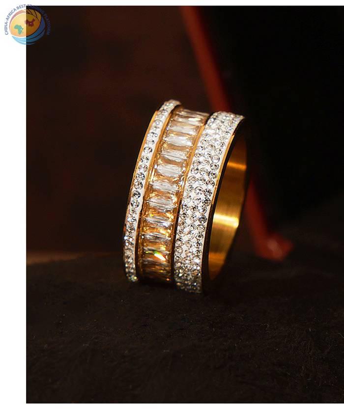 欧美高级感轻奢时尚小众设计钛钢镀金镶锆石戒指
