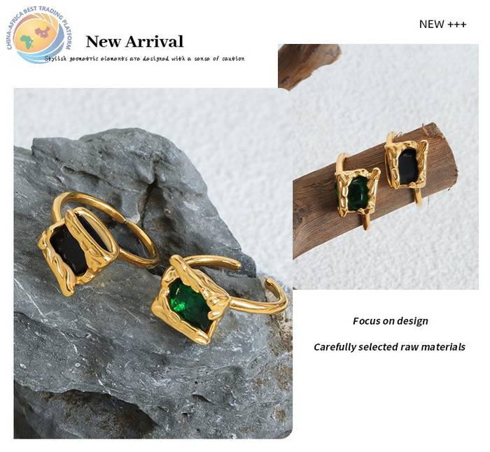 欧美复古祖母绿切面绿黑锆石轻奢质感戒指