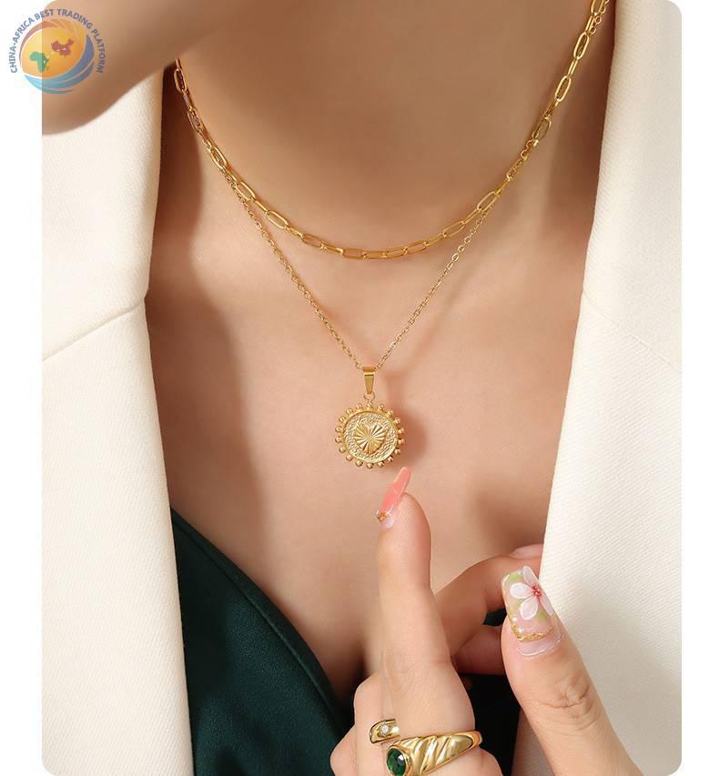 双层个性露骨吊坠锁骨链浮雕桃心A字母太阳花边项链