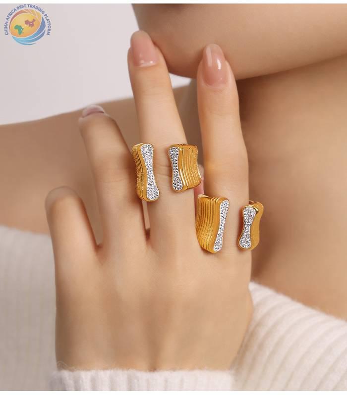 Europe and the United States new personalized fashion niche design titanium steel gold-plated diamond irregular opening ring
