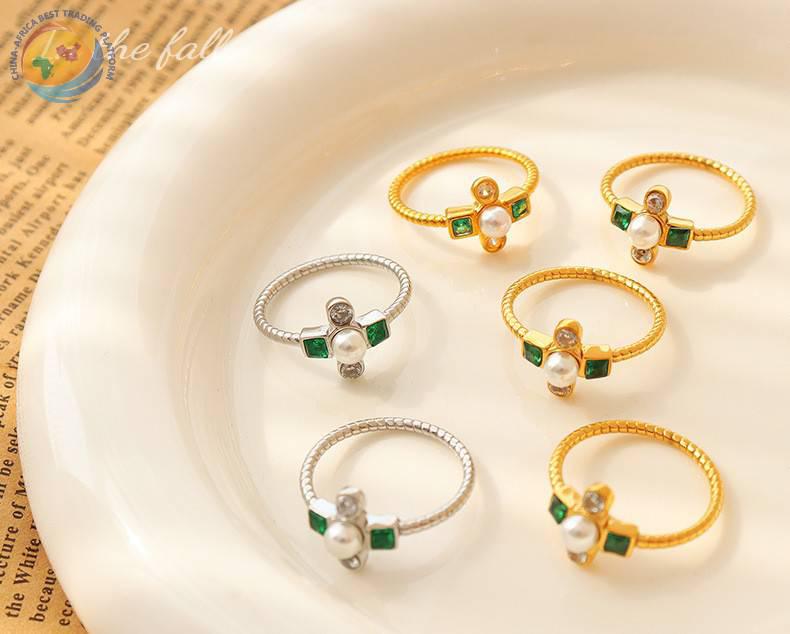 French light luxury ins rhinestone rubber bead ring personality niche design sense jewelry