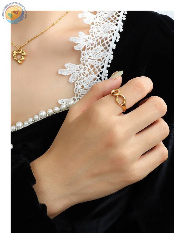 法式风格简约几何凹痕素圈戒指钛钢18k金食指戒指环