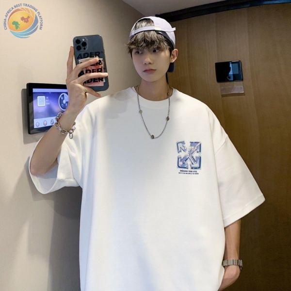 Crew-neck Korean T-shirt loose-fitting hip hop men\'s pullover top