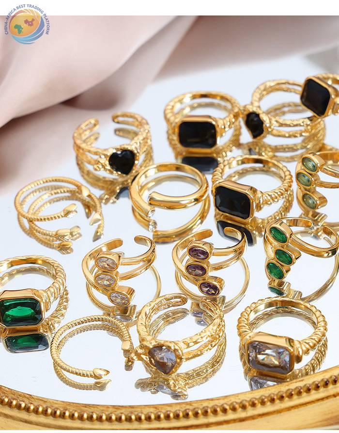 欧美小众ins风个性独特纹理几何型镶嵌设计感戒指女