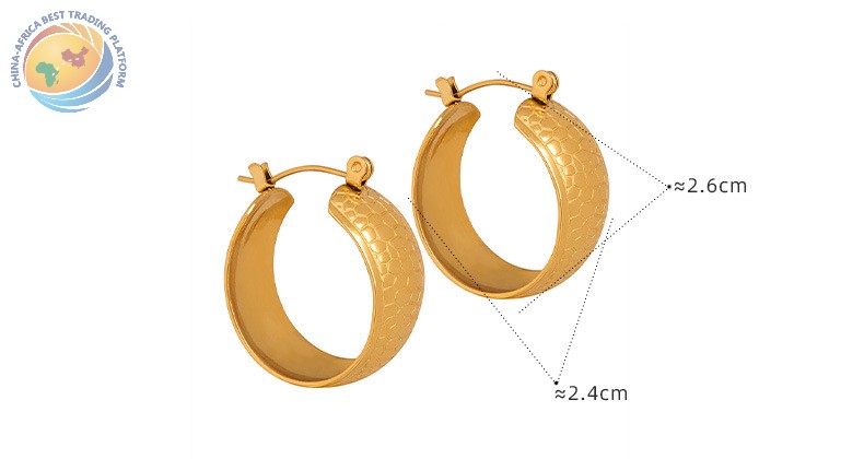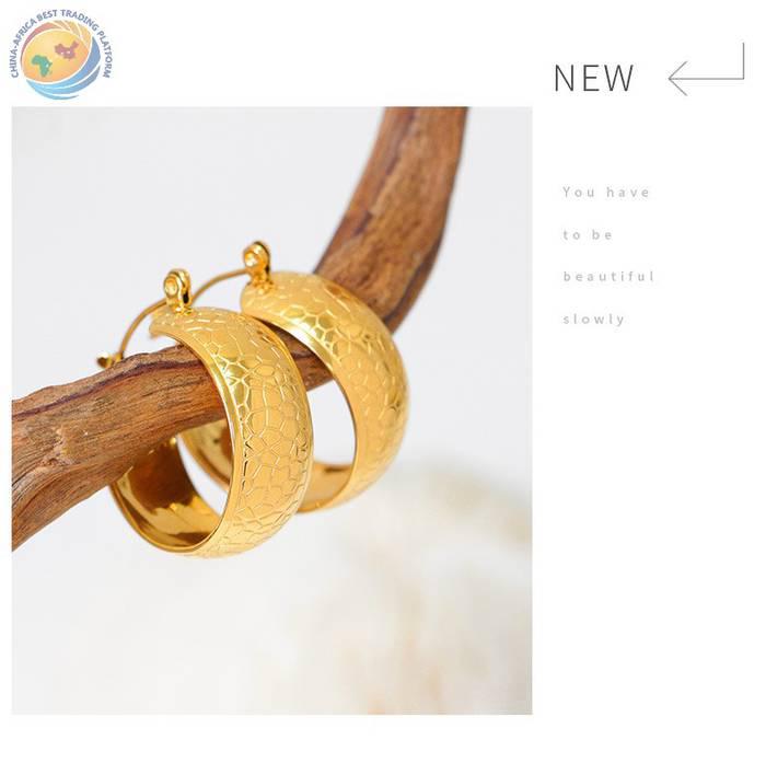 时尚耳饰钛钢电镀18K金U形龙鳞纹理小众简约耳环