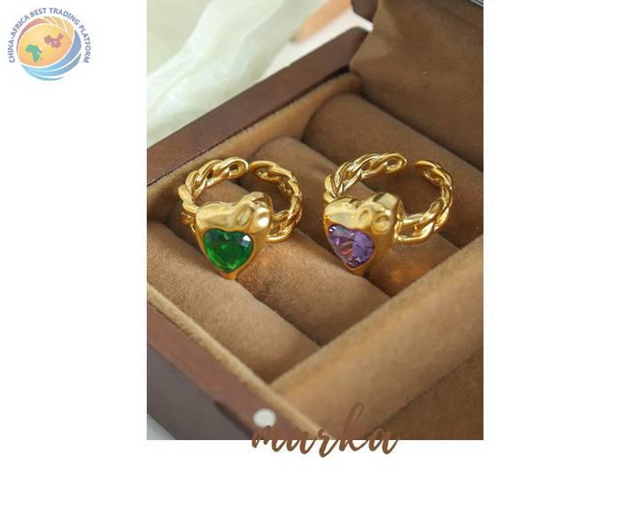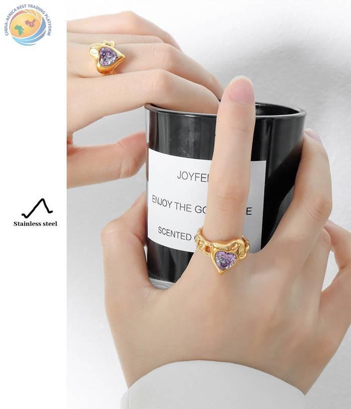 High-grade titanium steel gold-plated non-fading hand decoration purple zircon green heart ring