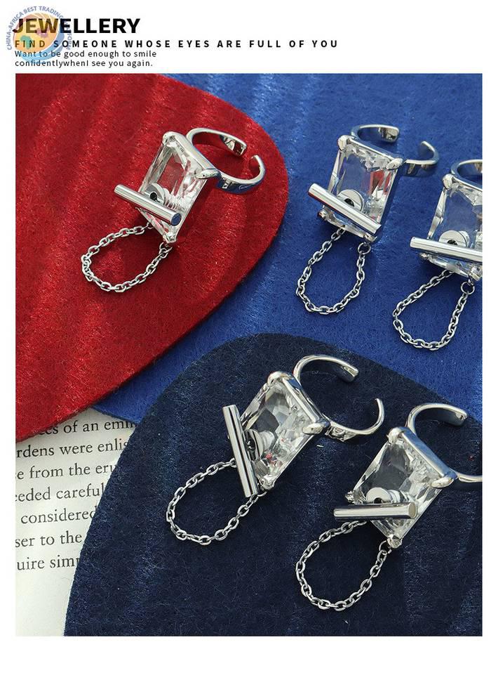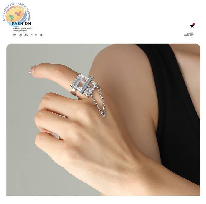 ins风指环配饰个性钛钢锆石镶嵌链条流苏开口戒指
