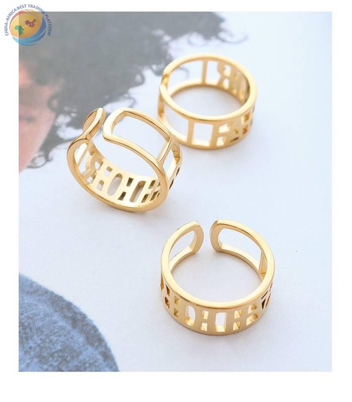 字母镂空戒指男女款钛钢镀18K真金尾戒