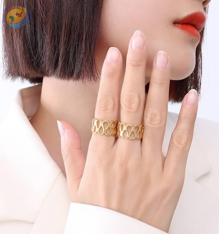 情侣款男女百搭指环镂空设计开口戒指时尚小众钛钢手饰