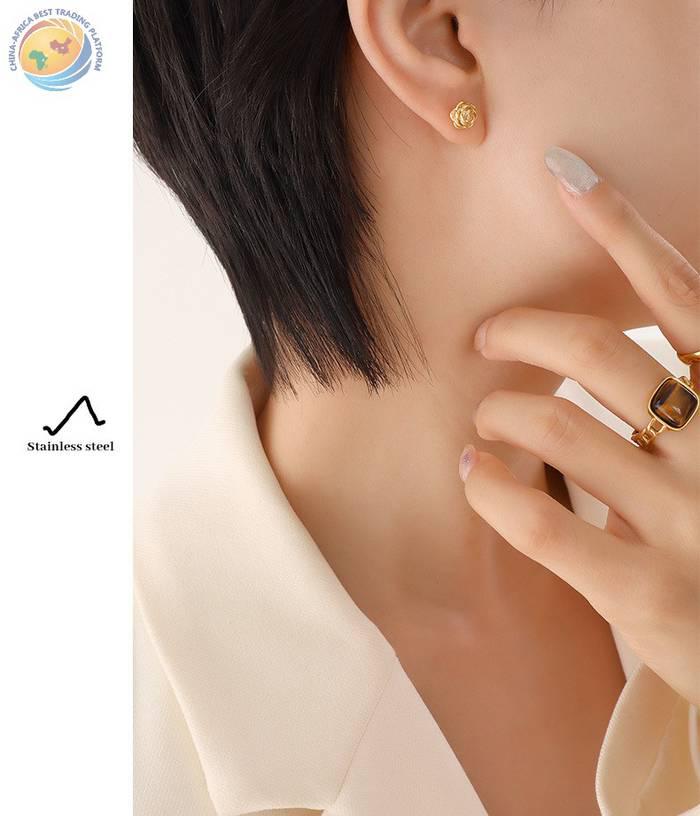 镀金玫瑰花朵耳钉韩系小香风可爱百搭小众设计耳饰