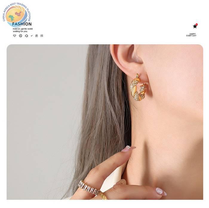 European and American fashion U-shaped titanium steel gold-plated zircon twist earrings ins style earrings