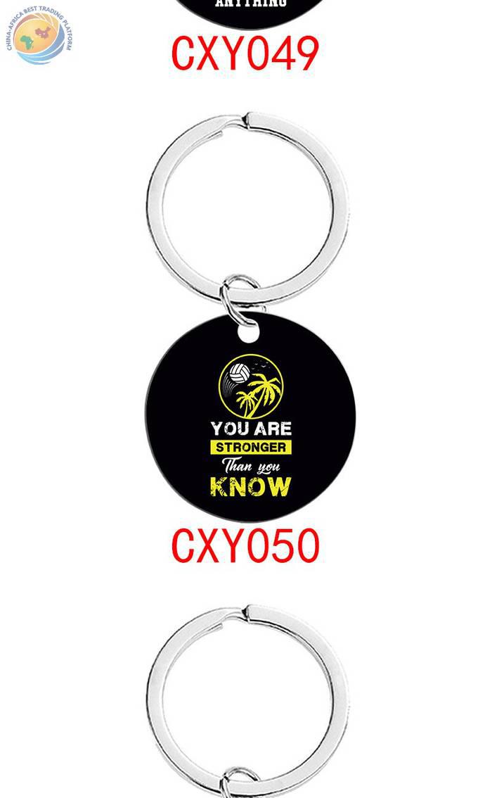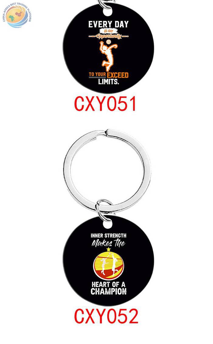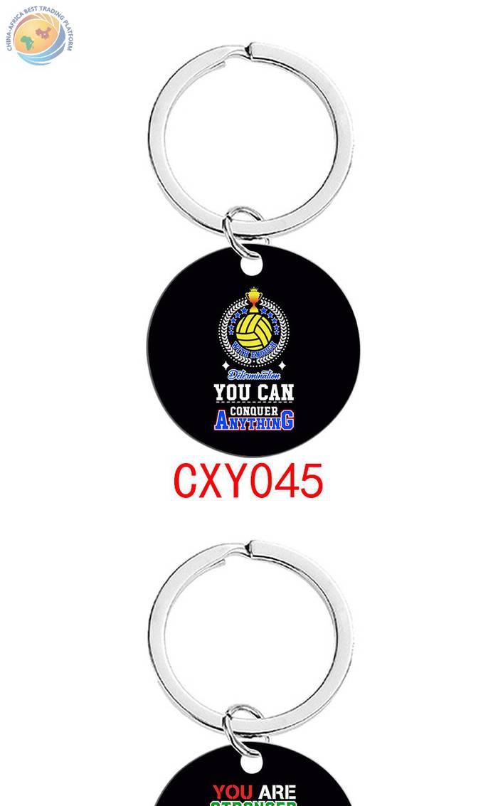 钥匙扣现货排球运动励志圆形吊牌节日礼物金属钥匙扣