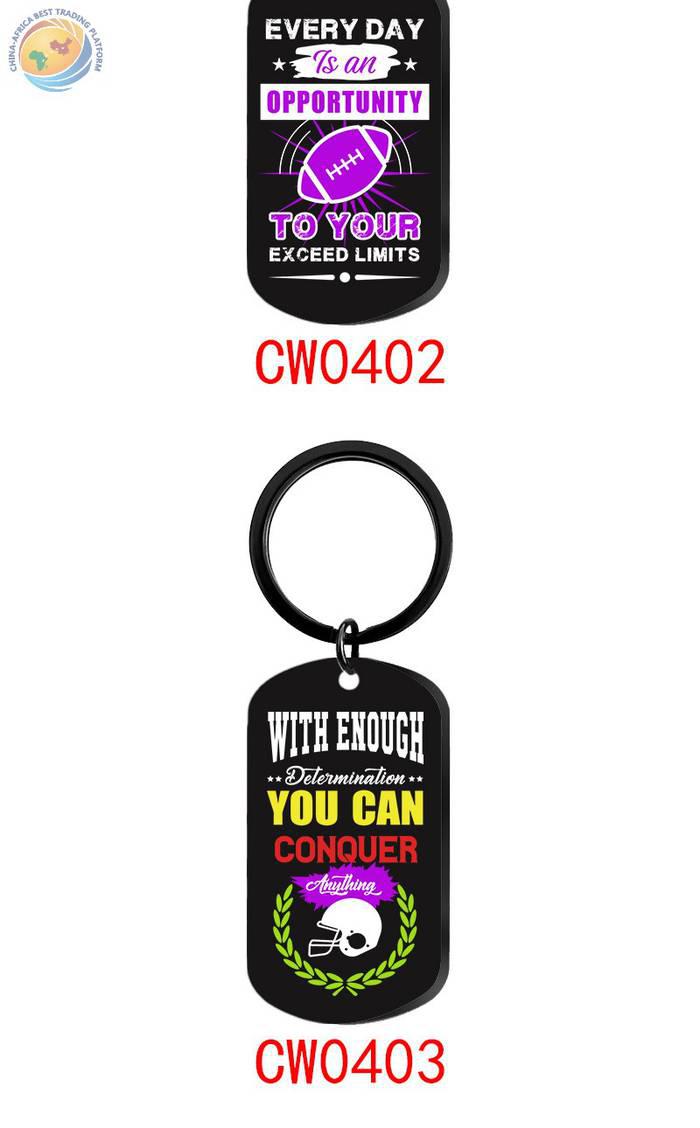钥匙扣现货橄榄球运动励志黑色吊牌款金属钥匙扣