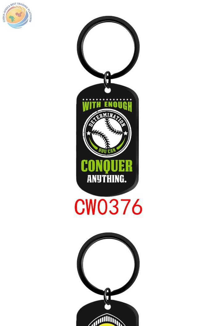 钥匙扣现货垒球棒球运动励志黑色吊牌金属钥匙扣