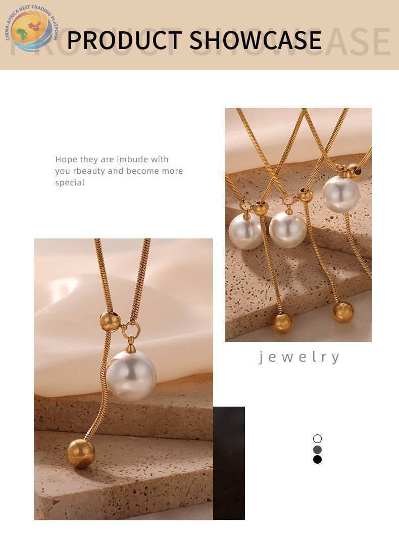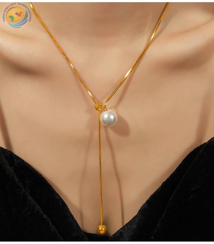 简约钛钢镀金圆珠流苏高光贝珠吊坠项链饰品