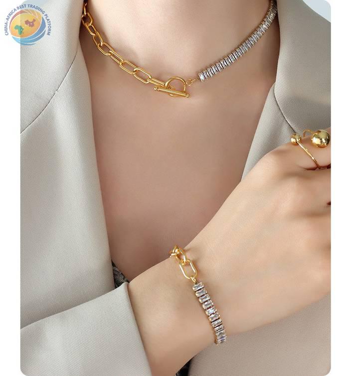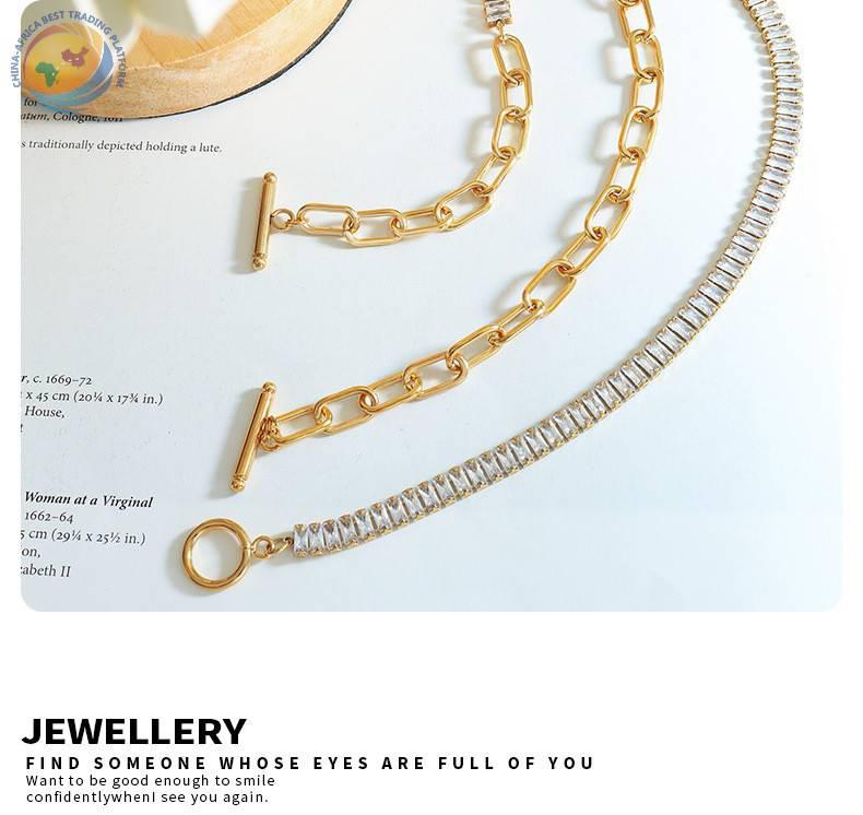 Cool Wind Chain OT Buckle Design Zircon Personality Necklace Hip Hop do not fade bracelet