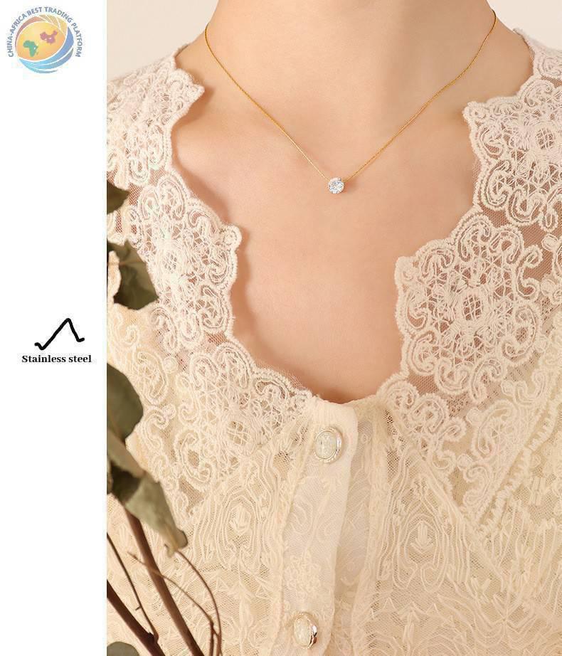锁骨链首饰镶嵌单钻锆石项链情侣款小众设计饰品女