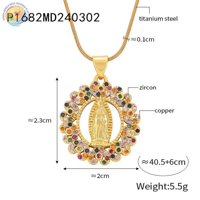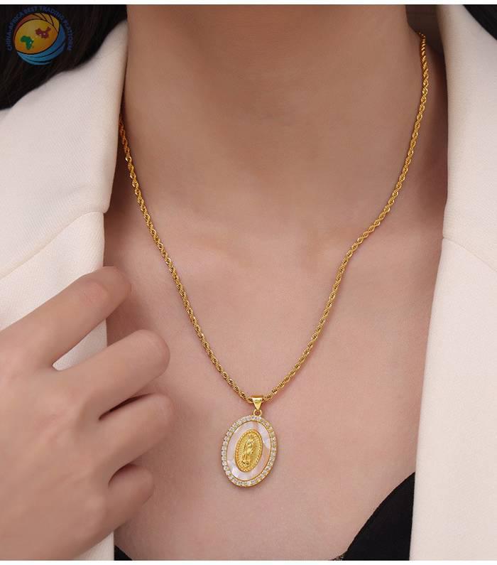 复古轻奢钛钢镀金圣母玛利亚几何镶钻吊坠项链