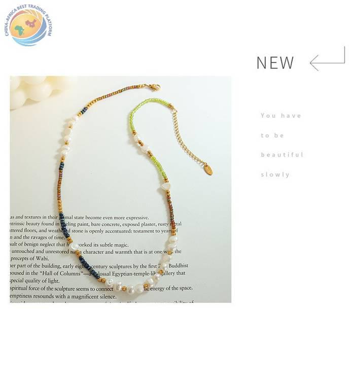 Bohemian freshwater pearl natural stone glass titanium steel beaded collarbone chain