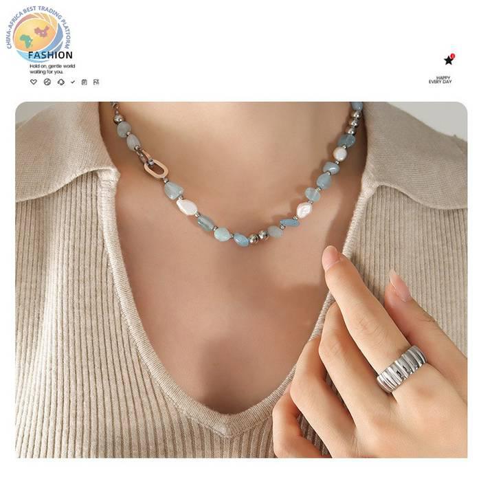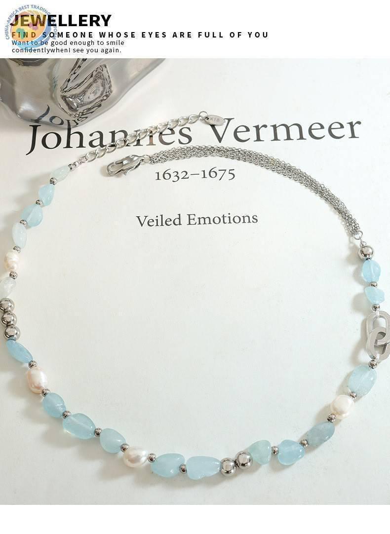 波西米亚民族风轻奢蓝色天然石链条个性项链