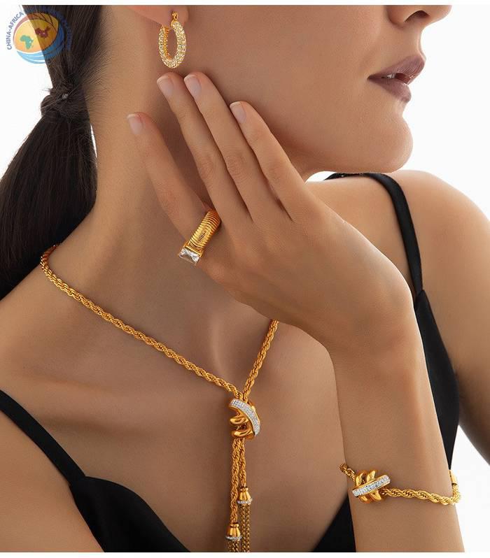 ins风简约个性几何麻花链轻奢风钛钢镀金首饰